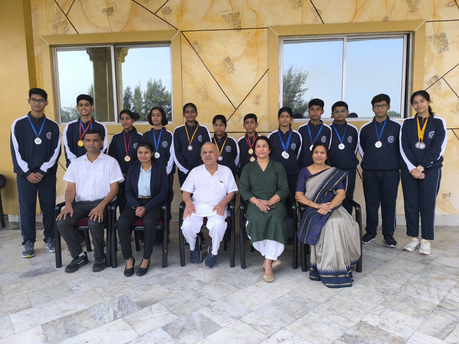 Hearty congratulations on the success of Divy Chouksey(IX)- Gold, Yatharth Dubey (IX)- Gold, Hanshika Patel (X) Silver, Manya Rathore(X)- Bronze and Simar Budhrani (VII)- Bronze in the 68th State Level Games Fencing Competition, and for being selected for the Nationals. The Institution proposes to felicitate them with a cheque of Rs. 10000/- for Gold, Rs. 7500/- for Silver and Rs. 5000/- for Bronze Medal winner with a citation very soon. We wish them best of luck for the Nationals.