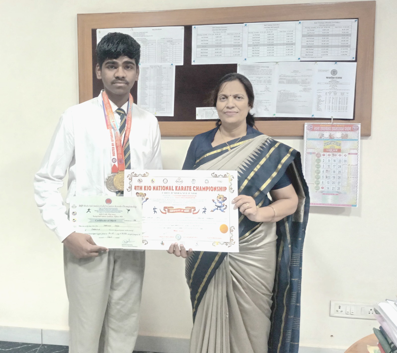 Kartik Sahu of Class X, bagged gold medal in State Championship also bagged Silver Medal in National Championship organized by KIO (Karate India Organisation ) i.e. 4th KIO National Championship. Which was held from 12/06/2025 to 15/06/2025 in Dehradun