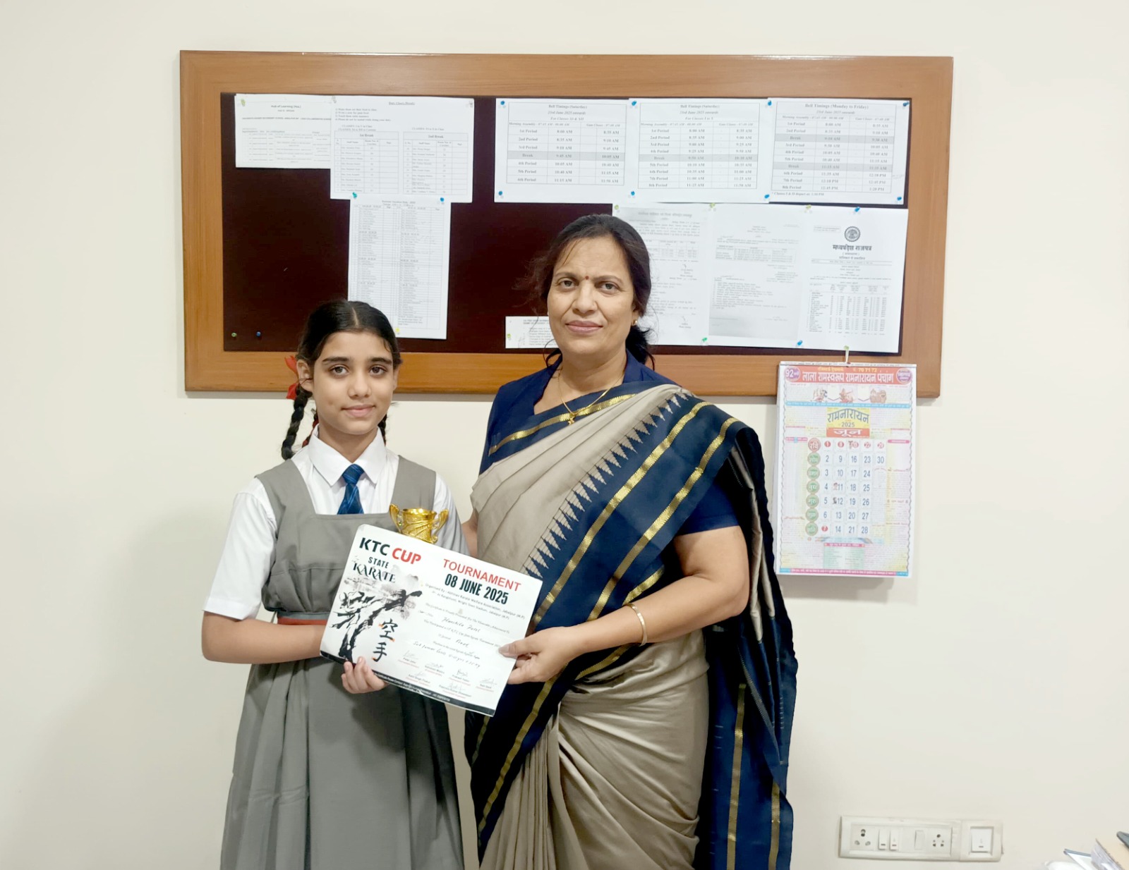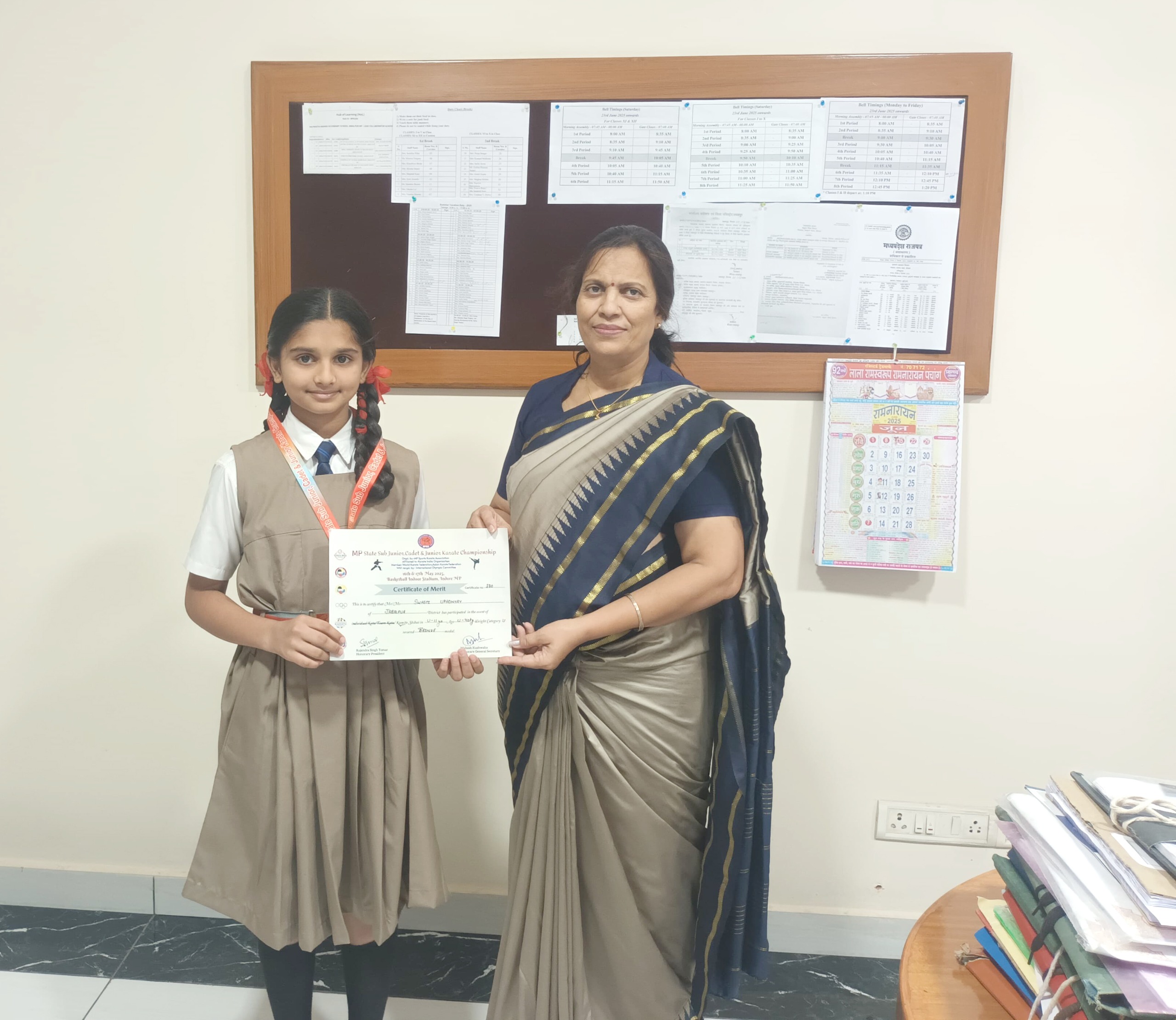 Swasti Upadhyay of Class VI, bagged Bronze Medal in State Karate Championship organized by 4th KIO (Karate India Organisation) National Championship & WKF (World Karate Federation). Which was held in Indore from 16/06/2025 to 17/06/2025.